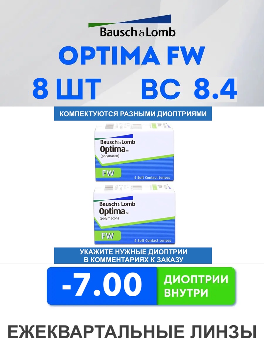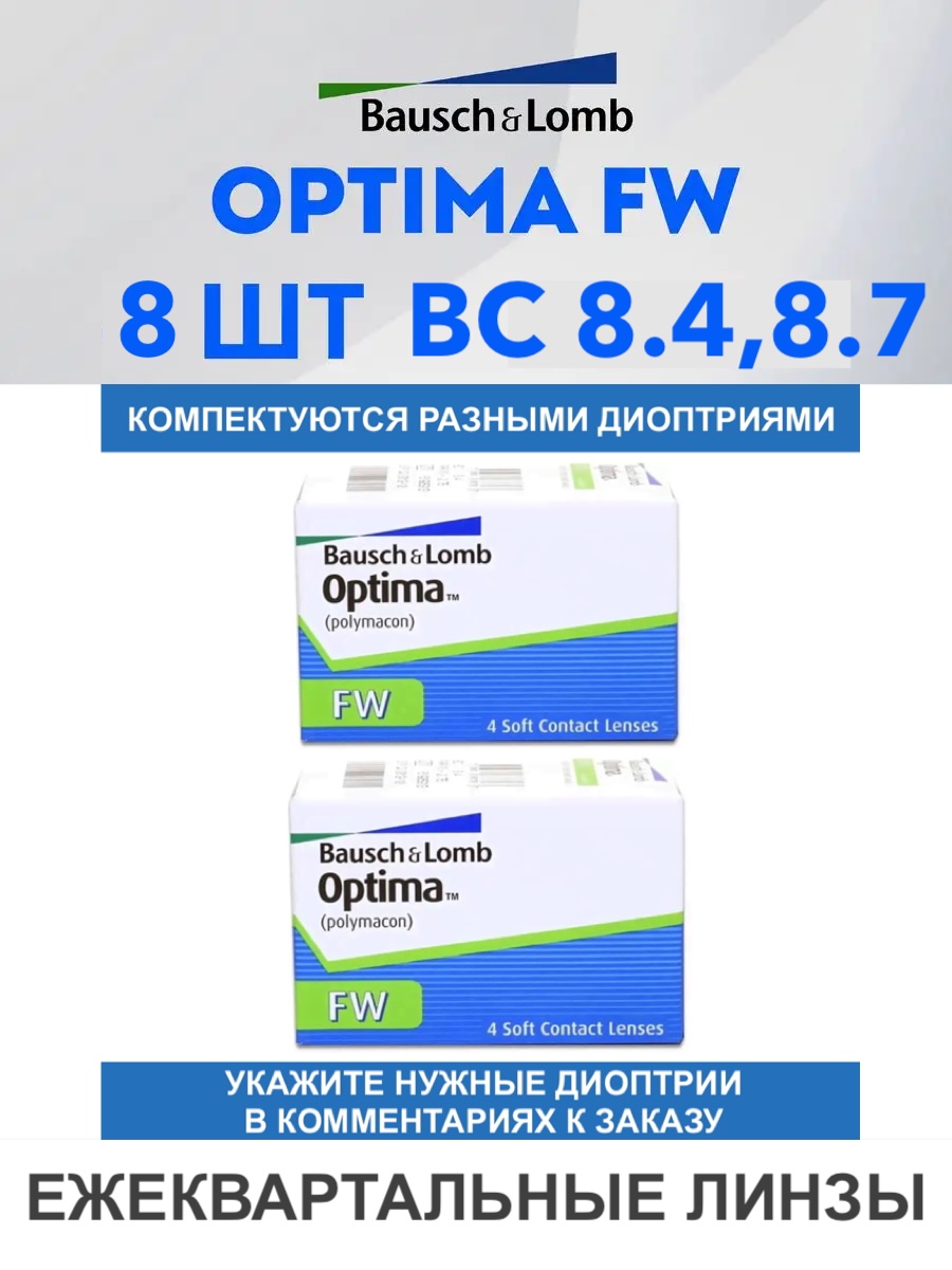 Трехмесячные контактные линзы Optima FW (комплект 8 линз)