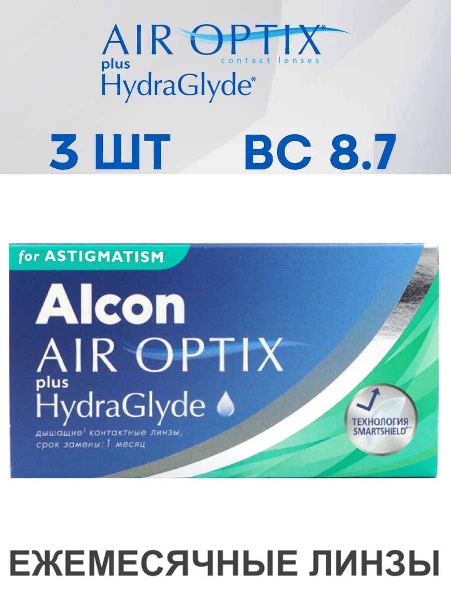 Ежемесячные астигматические линзы Air Optix for Astigmatism plus HydraGlyde (уп. 3 линзы)