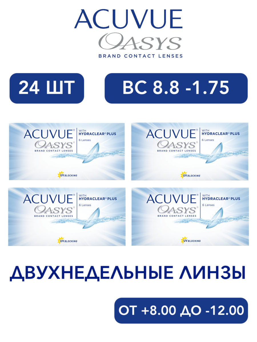 Двухнедельные контактные линзы Acuvue Oasys BC 8.4, 8.8 (комплект 24 линзы)