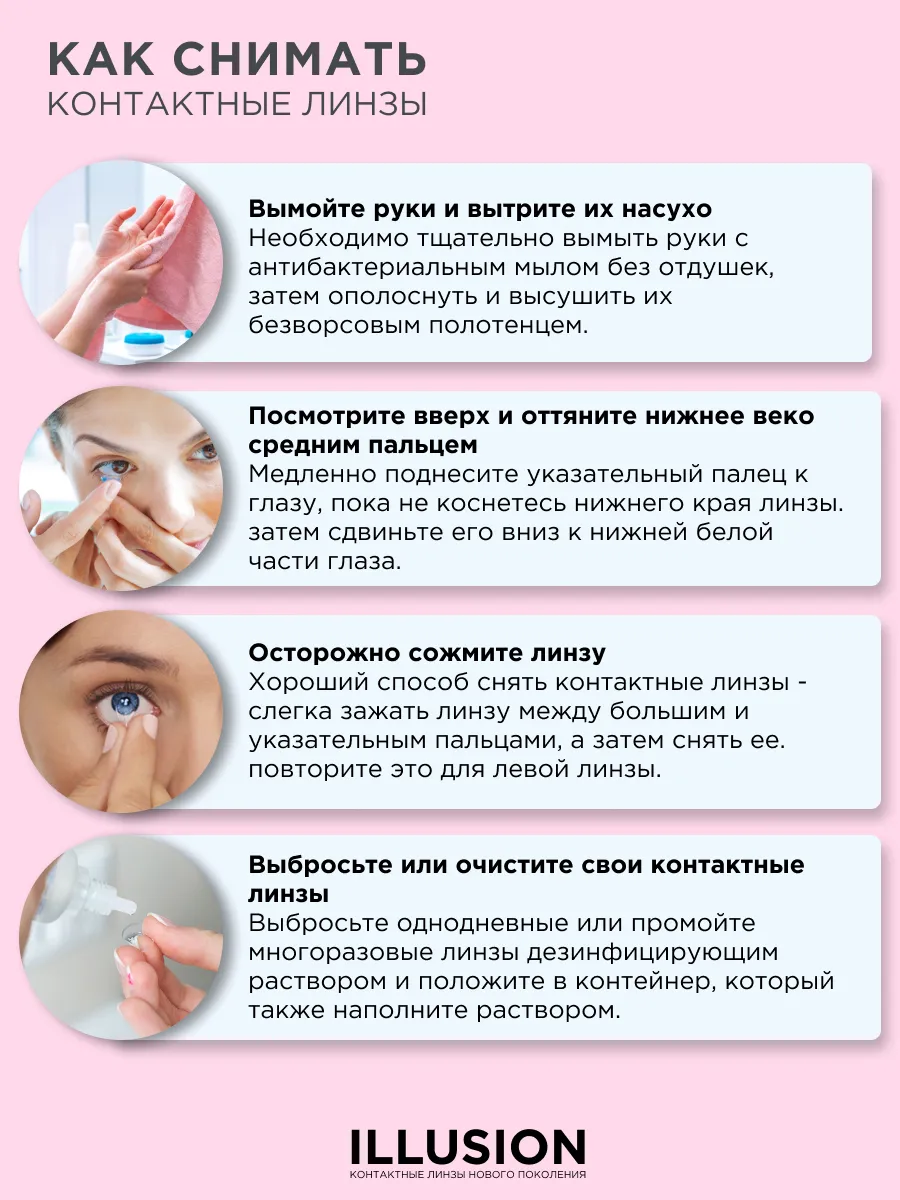 Эти линзы станут вашим секретом очарования! Подчеркните естественную красоту ваших глаз или полностью измените их цвет благодаря богатой палитре оттенков. Линейка ILLUSION COLORS ELEGANCE предлагает вам выбор между насыщенными однотонными цветами, каждый из которых обладает тонким контуром, добавляющим глубину и загадочность вашему взгляду. Линзы удобны в использовании – они предназначены для дневного ношения и подлежат замене каждые три месяца. А забота о здоровье глаз становится простой задачей с использованием качественных многофункциональных растворов, таких как те, что можно найти на нашем сайте. Подарите своим глазам комфорт и стиль вместе с ILLUSION COLORS ELEGANCE!