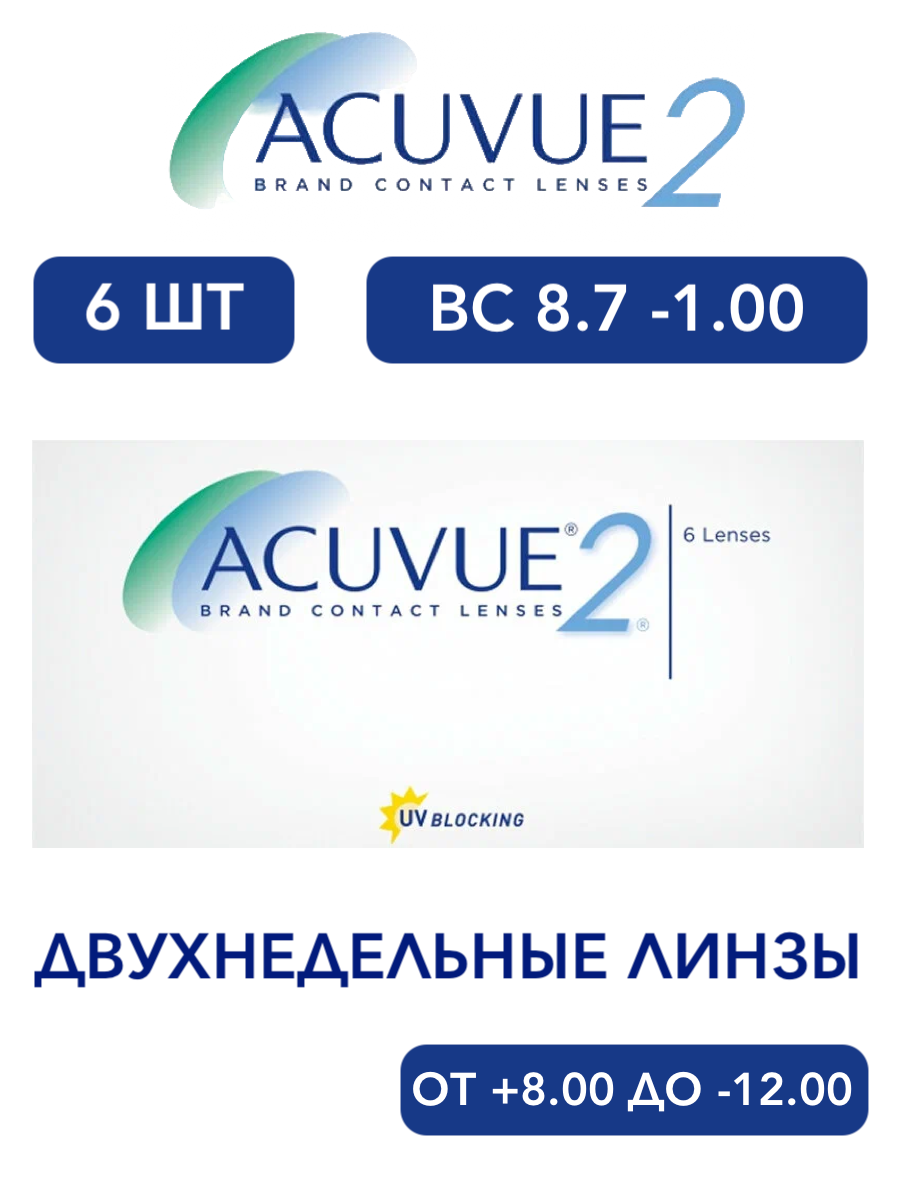 Двухнедельные контактные линзы Acuvue 2 ВС 8.3, 8.7 (уп. 6 линз)