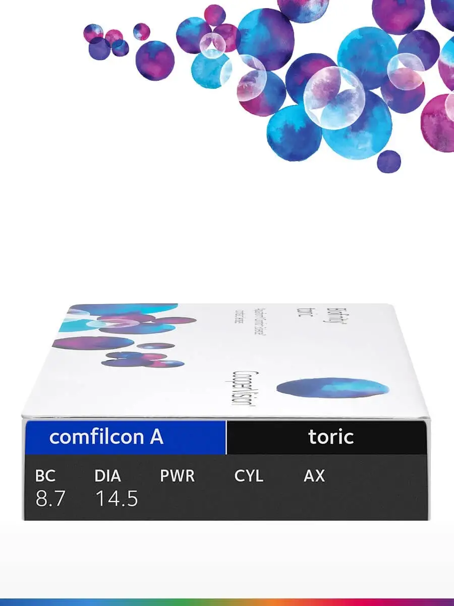 Эти ежемесячные контактные линзы идеально подходят для тех, кто ценит комфорт и четкость зрения. Благодаря уникальному материалу Comfilcon A, они сочетают высокую пропускную способность кислорода, необходимую для здоровья глаз, и естественное увлажнение, предотвращающее сухость и раздражение. Низкий модуль упругости делает их мягкими и гибкими, а особая конструкция гарантирует устойчивость и отсутствие неприятных ощущений во время моргания. Выберите Biofinity Toric – ваш путь к уверенности и свобода движений каждый день!