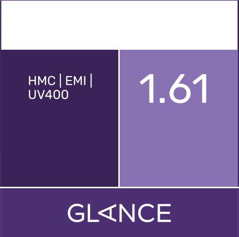Тонкая линза Glance 1.61 HMC/EMI/UV400 изготовлена из материала с высоким коэффициентом преломления ne=1.61.
