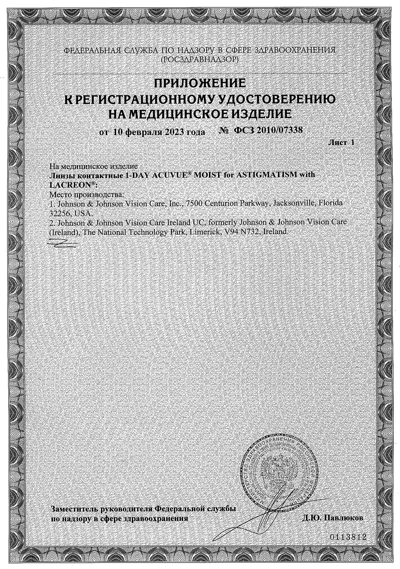 Контактные линзы 1-Day Acuvue Moist for Astigmatism (уп. 30 линз)