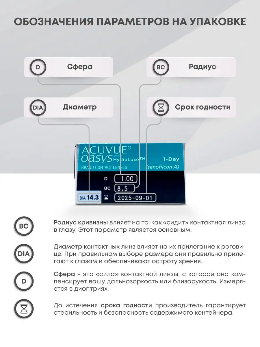 Однодневные контактные линзы ACUVUE OASYS 1-DAY with HydraLuxe помогут вам сохранить ясность зрения и свежесть взгляда независимо от условий окружающей среды. Благодаря технологии HydraLuxe, эти силикон-гидрогелевые линзы поддерживают естественную слезную пленку глаза, предотвращая ощущение сухости и усталости даже после длительного использования электронных устройств. Не требующие очистки и хранения, они являются идеальным выбором для тех, кто ценит простоту ухода и заботится о своем зрении. Обратите внимание, что перед приобретением важно проконсультироваться у офтальмолога!
