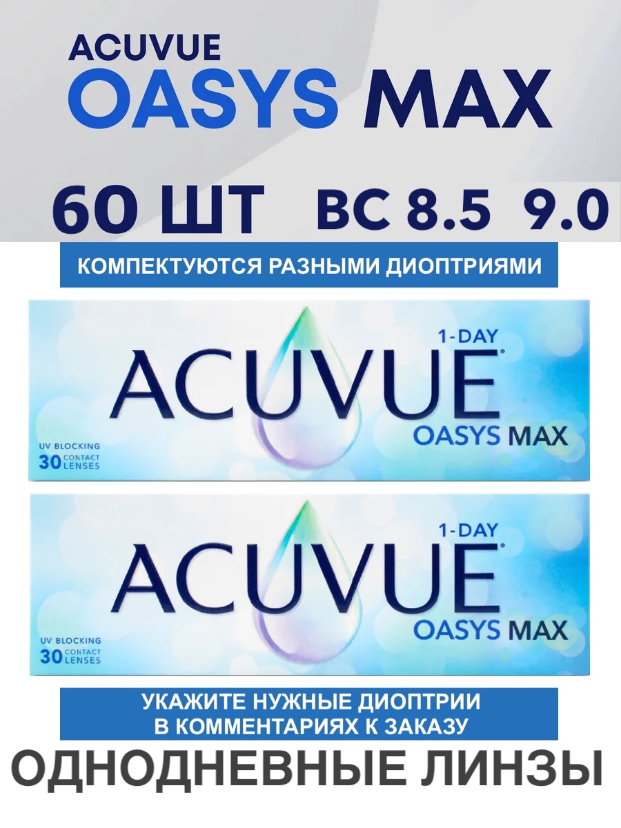 Однодневные контактные линзы Acuvue Oasys MAX 1-Day (комплект 60 линз)