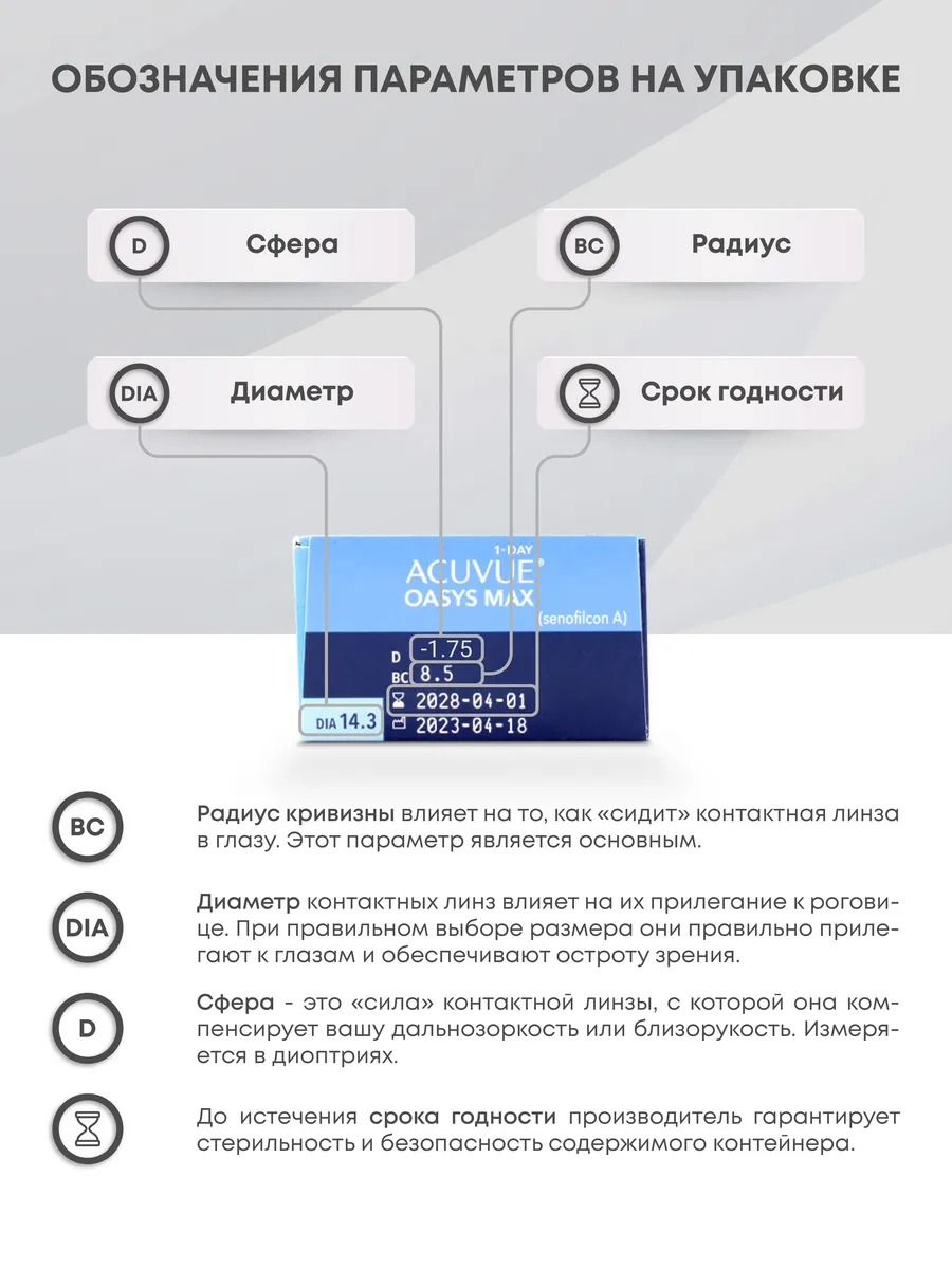 Закажите Acuvue Oasys MAX 1‑Day на Линзынадом24.рф прямо сейчас — и наслаждайтесь чётким зрением и комфортом без забот о дополнительном уходе!