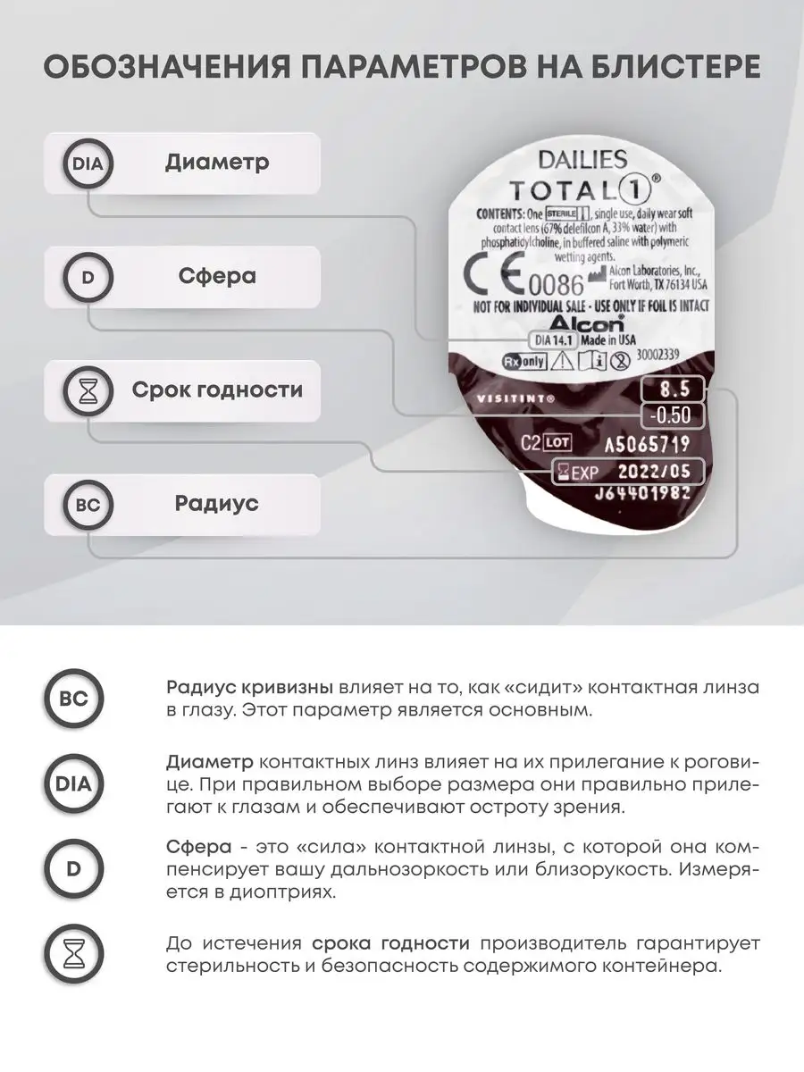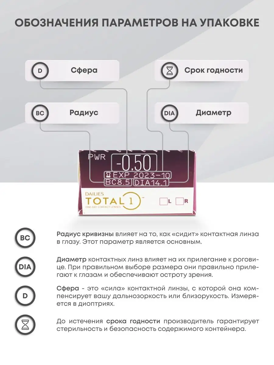 Выбирая Dailies Total 1, вы получаете лучшее качество зрения и непревзойдённую заботу о своих глазах каждый день. Пусть ваш мир будет таким же ясным и чистым, каким его видите именно вы!