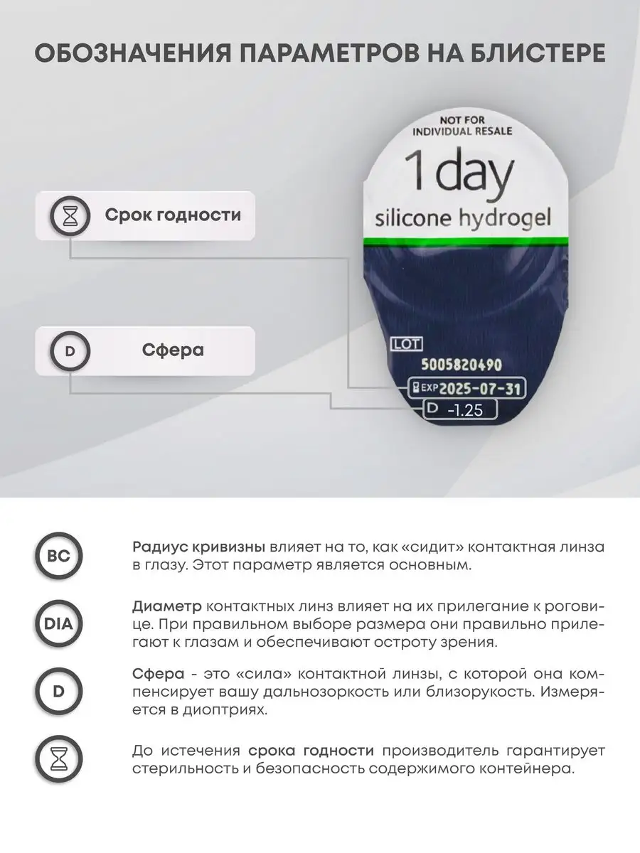 Линзы MyDay daily disposable обеспечивают комфортное ношение благодаря высокой воздухопроницаемости и увлажненности, что делает их подходящим вариантом даже для самых требовательных пользователей. В упаковке находится 90 линз, которых хватит на достаточно длительный период времени при соблюдении ежедневной замены. Выберите эти линзы для здоровья ваших глаз и ясного зрения каждый день!
