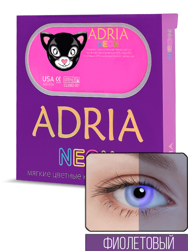 Adria Neon - светящиеся цветные линзы. Твои глаза будут светиться в темноте под лучами ультрафиолета. Отлично подходят для вечеринок и фотосессий.