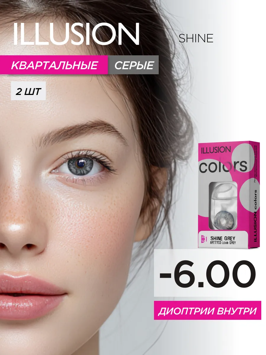ILLUSION COLORS SHINE – это высококачественные гидрогелевые линзы со сроком службы всего три месяца, которые придадут вашему взгляду яркость и выразительность благодаря своему глубокому пигменту. Они выполняются из безопасного и биосовместимого материала под названием полимакон. Каждый элемент продуман таким образом, чтобы обеспечить комфортное использование этих линз каждый день. Вам доступны шесть потрясающих цветовых решений – от классического черного до загадочного серого – среди которых можно найти вариант, подходящий именно вам! При этом даже без корректирующих свойств (с оптической силой 0.0), ваши глаза будут сиять природной красотой. А если необходимы линзы с диоптриями, то их диапазон покрывает значения вплоть до -6.0D. Не забывайте заботиться о своих глазах и регулярно консультируйтесь с офтальмологом перед использованием новых средств коррекции зрения.