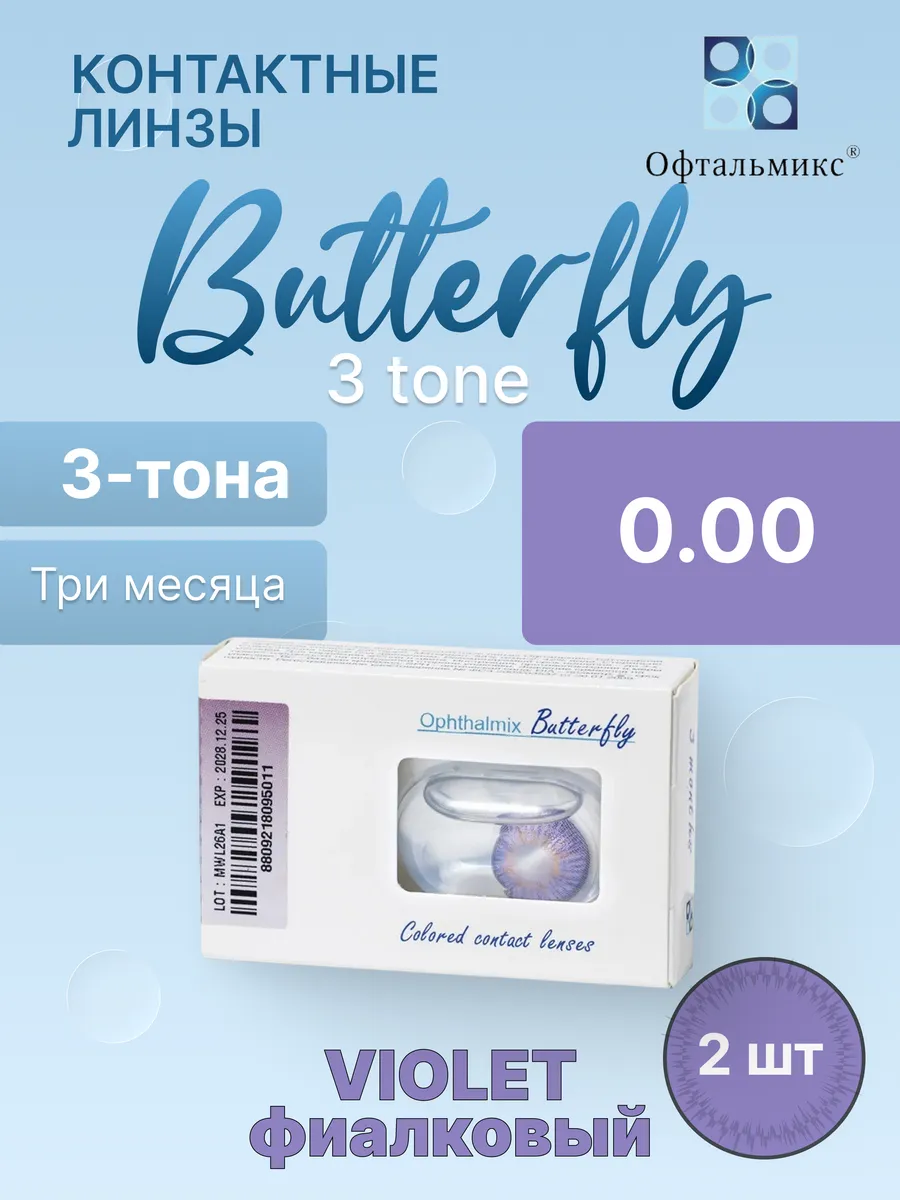 Трехмесячные цветные контактные линзы Офтальмикс Butterfly 3 Tone (уп. 2 линзы)